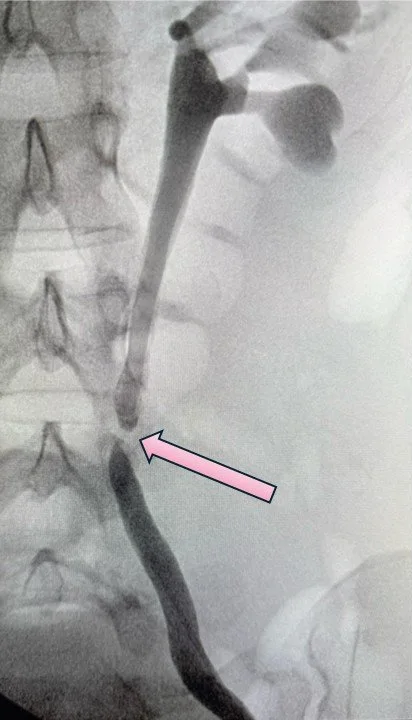 The three x-rays below are three patients of mine who all had an obstruction of the upper ureter known as a ureteropelvic junction obstruction (UPJO) - which I fixed with robotic surgery. The ureteropelvic junction is where the renal pelvis (the hollow part of the kidney that collects urine) becomes the ureter (the thin tube through which urine passes down to the bladder). At this connection - the UPJ - there is a funneling, or tapering, from the larger renal pelvis to the narrow ureter. Some people are born with this connection being too tight, and that is called a ureteropelvic junction obstruction (UPJO). Surgery to repair this small tight area is called a pyeloplasty. I perform both single port robotic pyeloplasty and multiport robotic pyeloplasty that has an incredibly high success rate - 98%.